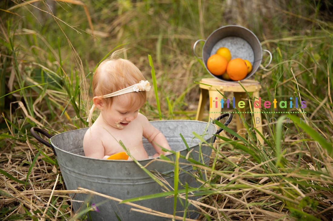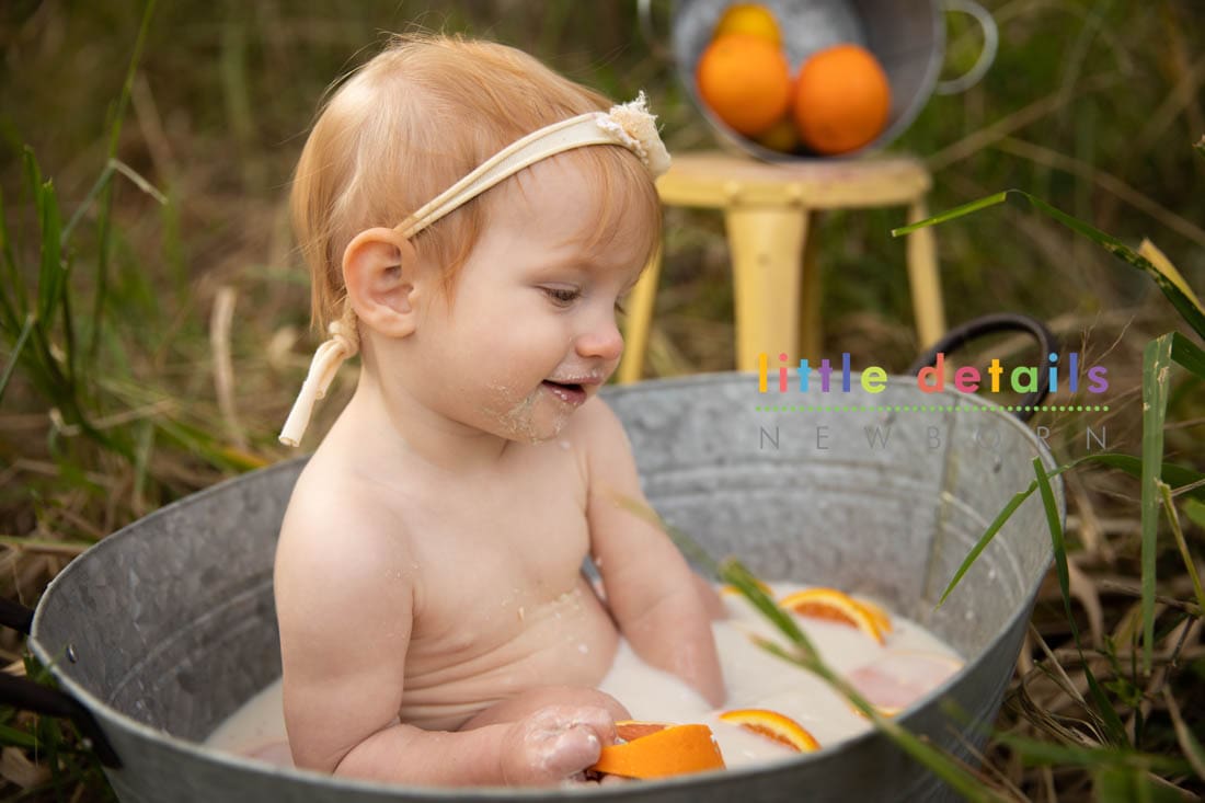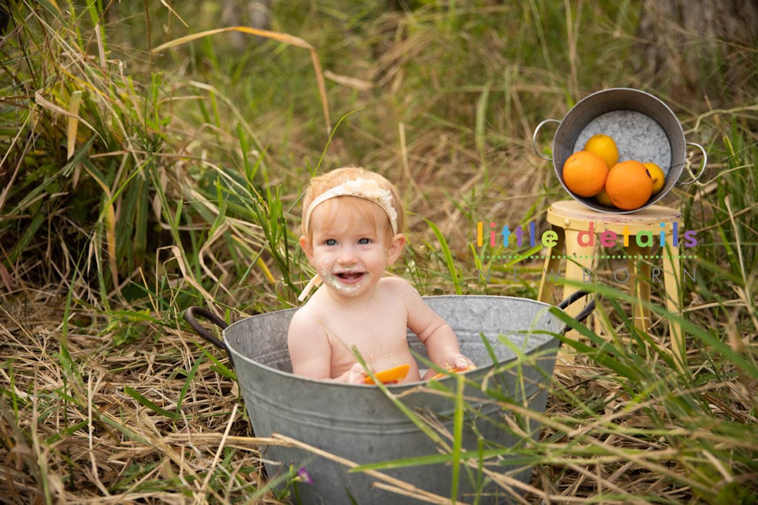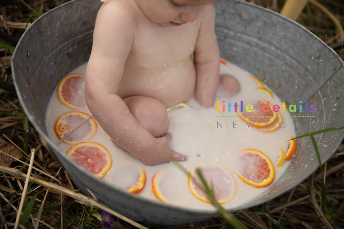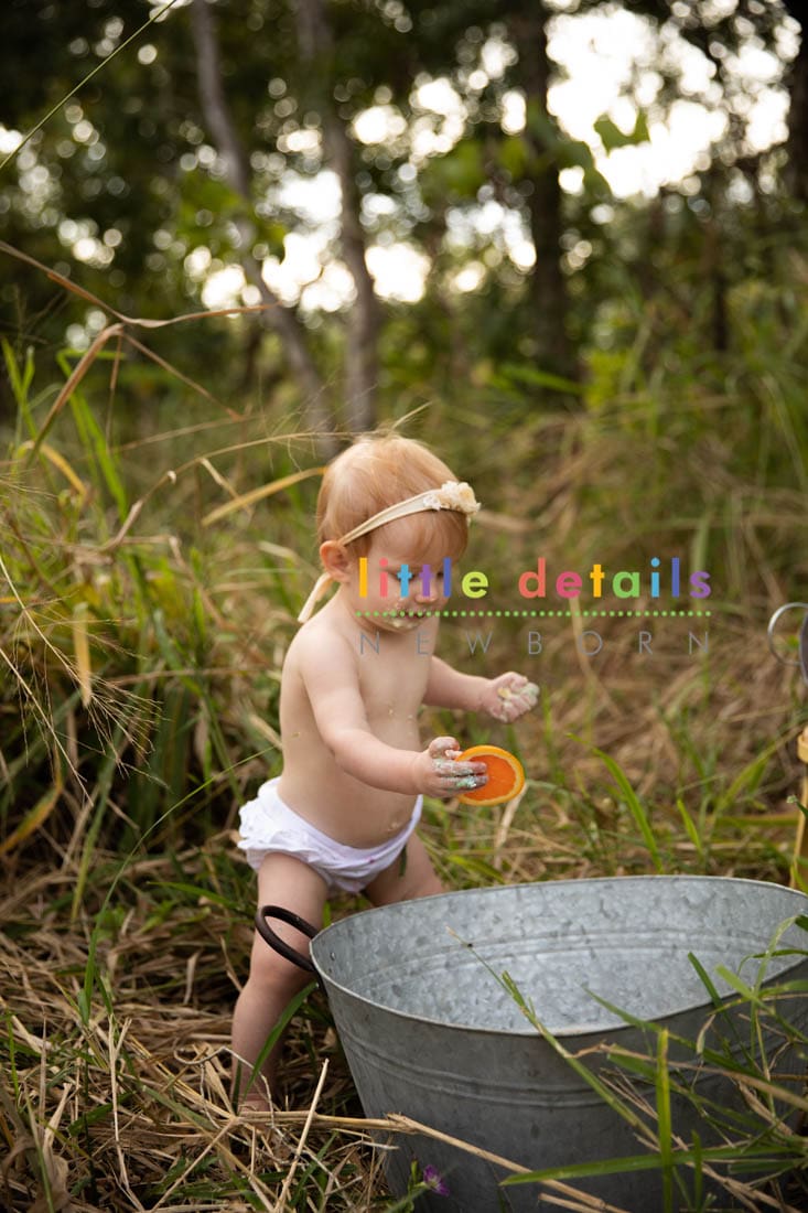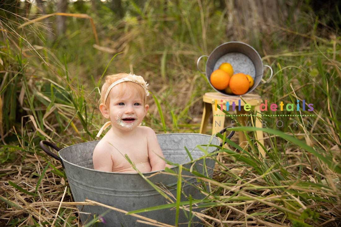 Plan clothing for your session – choose a few outfits that can be worn and changed quickly. Something for portraits, cake smash and if you are doing a milk bath or bubble bath, swimmers or nappy covers work great. Bub can also go nudie if parent consents.
