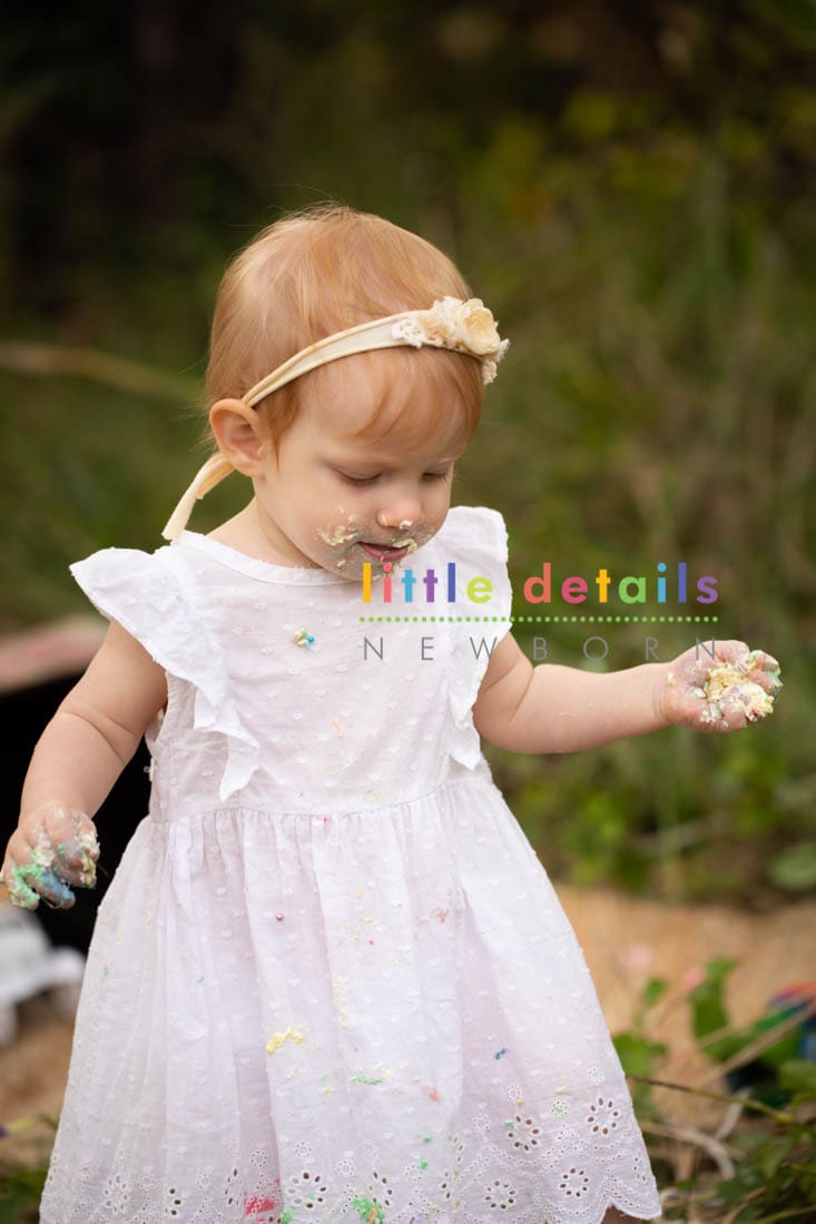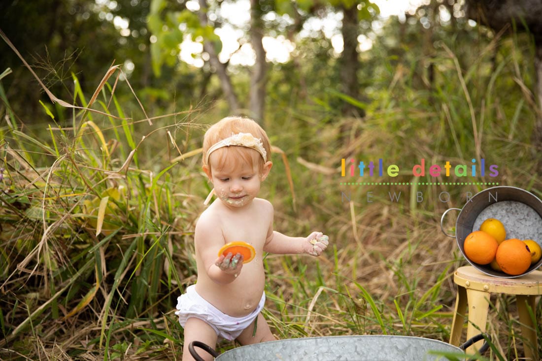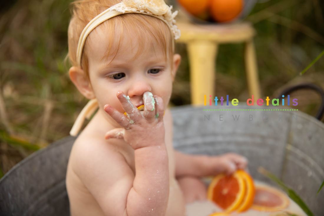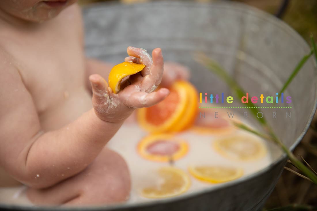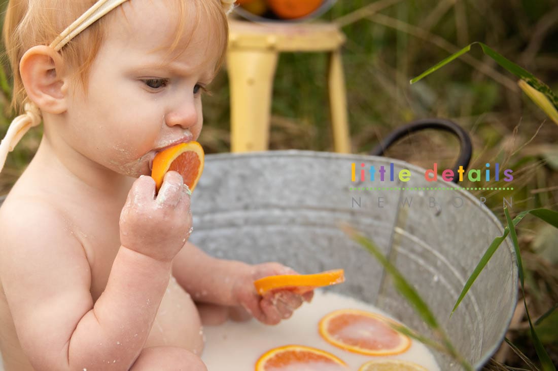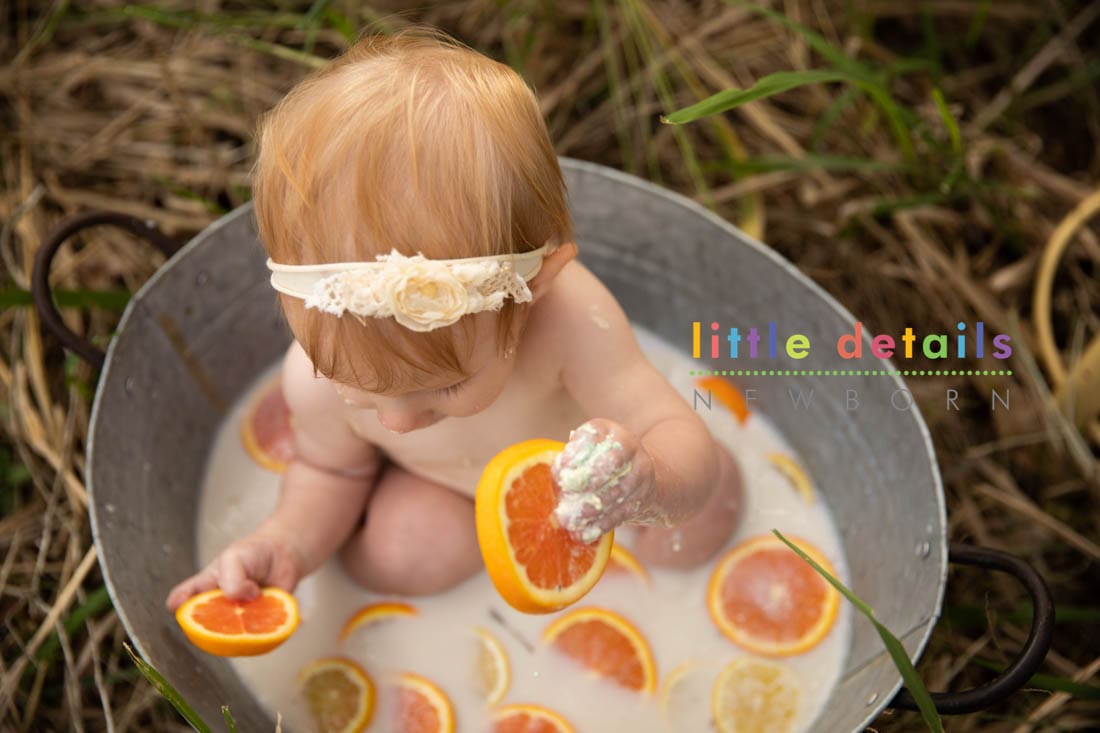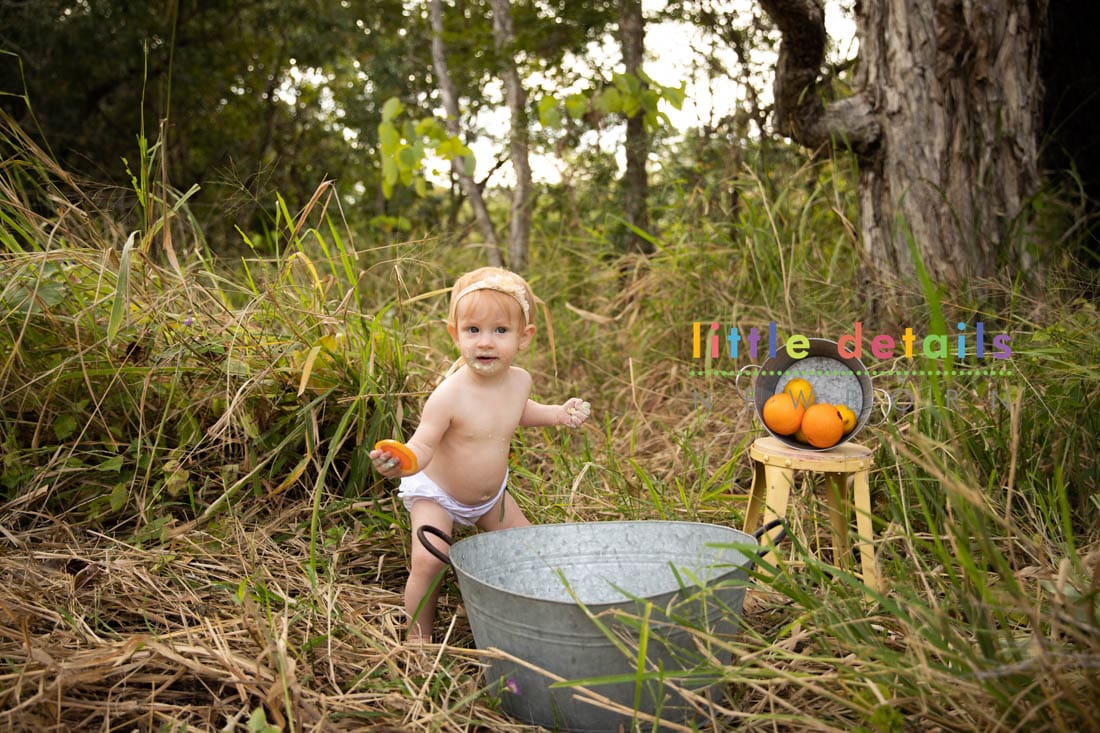 Plan clothing for your session – choose a few outfits that can be worn and changed quickly. Something for portraits, cake smash and if you are doing a milk bath or bubble bath, swimmers or nappy covers work great. Bub can also go nudie if parent consents.