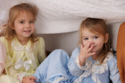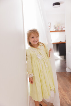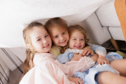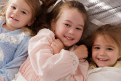 Mum is a creative soul! All of the gorgeous outfits these girls come in are usually handmade. Mum had the idea to do a studio session in these adorable little dresses. The girls had the best time – plenty of giggling, bouncing on the bed, and hiding under sheets.
