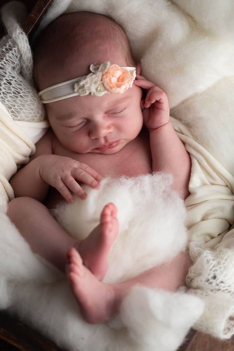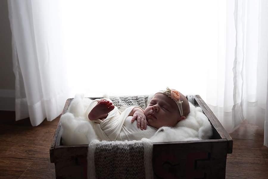 Newborn sessions are held in my cozy light filled studio. The studio is filled with beautiful blankets, wraps and stunning props for use during your session. Newborns are magic in the first few days of life so it is recommended to hold your session when your baby is between 5 and 10 days old.
